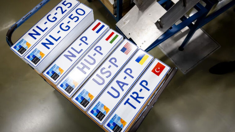 Интересно, что для Нидерландов зарезервированы два типа номерных знаков. Один тип такой же как у всех других стран, с буквой «P» после обозначения страны. Такие номера будут на автомобилях официальной делегации в НАТО. Другой, с «G», без флага и с дополнительными цифрами, скорее всего, предназначается для организаторов проведения саммита.