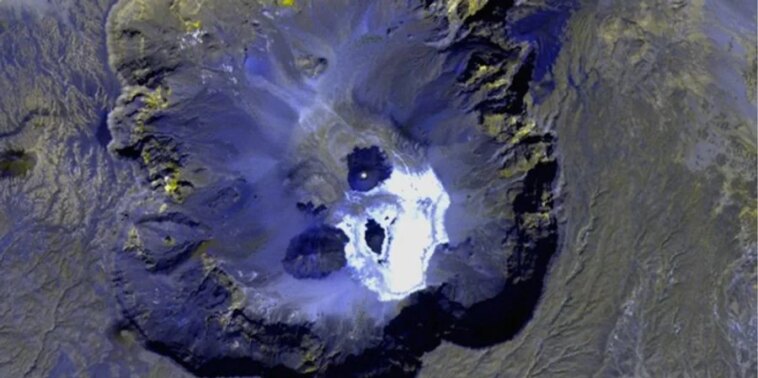 У Сахарі супутник NASA зняв незвичне явище: у великому вулканічному кратері з’явилося природне утворення, що нагадує людський череп. На знімку видно біле «обличчя» з темними «очима» та «носом», яке ніби дивиться з поверхні Землі.