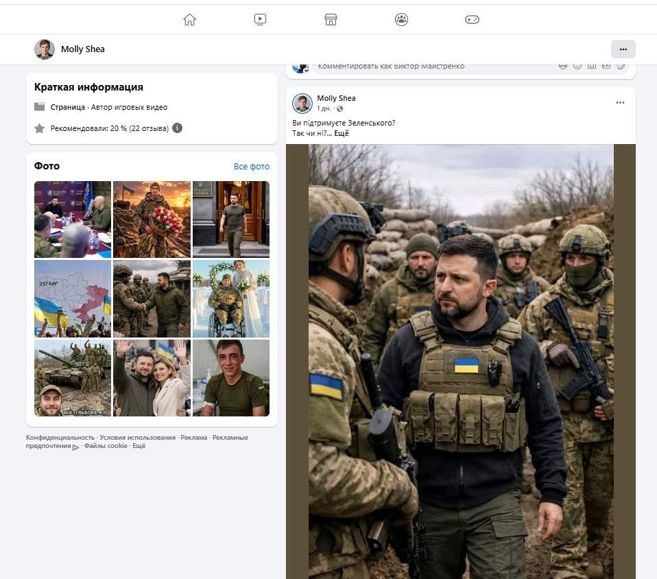А дальше все просто — в день публикуется пара десятков постов. Один — ИИ с воином-инвалидом, кому сегодня день рождения, он в окопе, а никто его не поздравит — не лайкнет. А второй: «Доверяете ли вы Зеленскому».