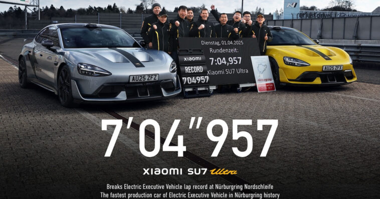 Седан Xiaomi SU7 Ultra с опциональным «трековым пакетом» прошел круг Нюрбургринга за 7 минут 4.957 секунды. Это лучший результат для серийного электромобиля в истории этой трассы.